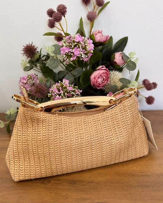 Bolso rafia cuadrado aplique dorado
