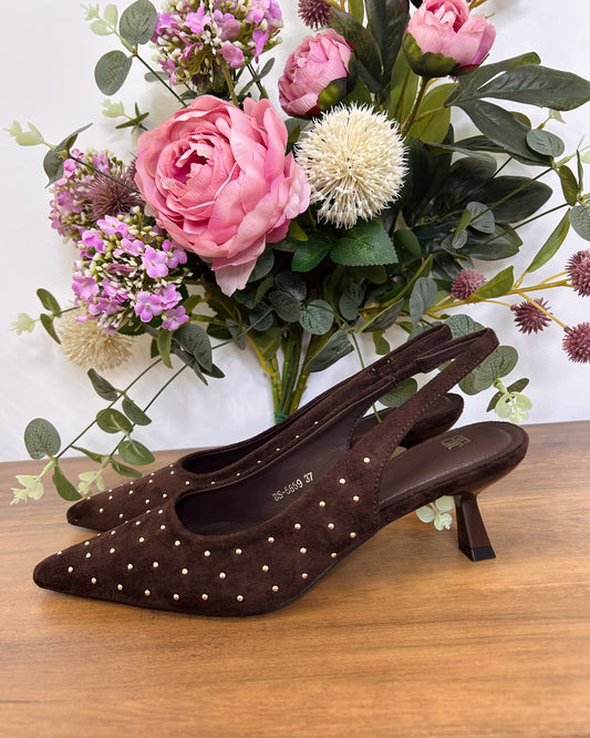 Tacón tachas marrón