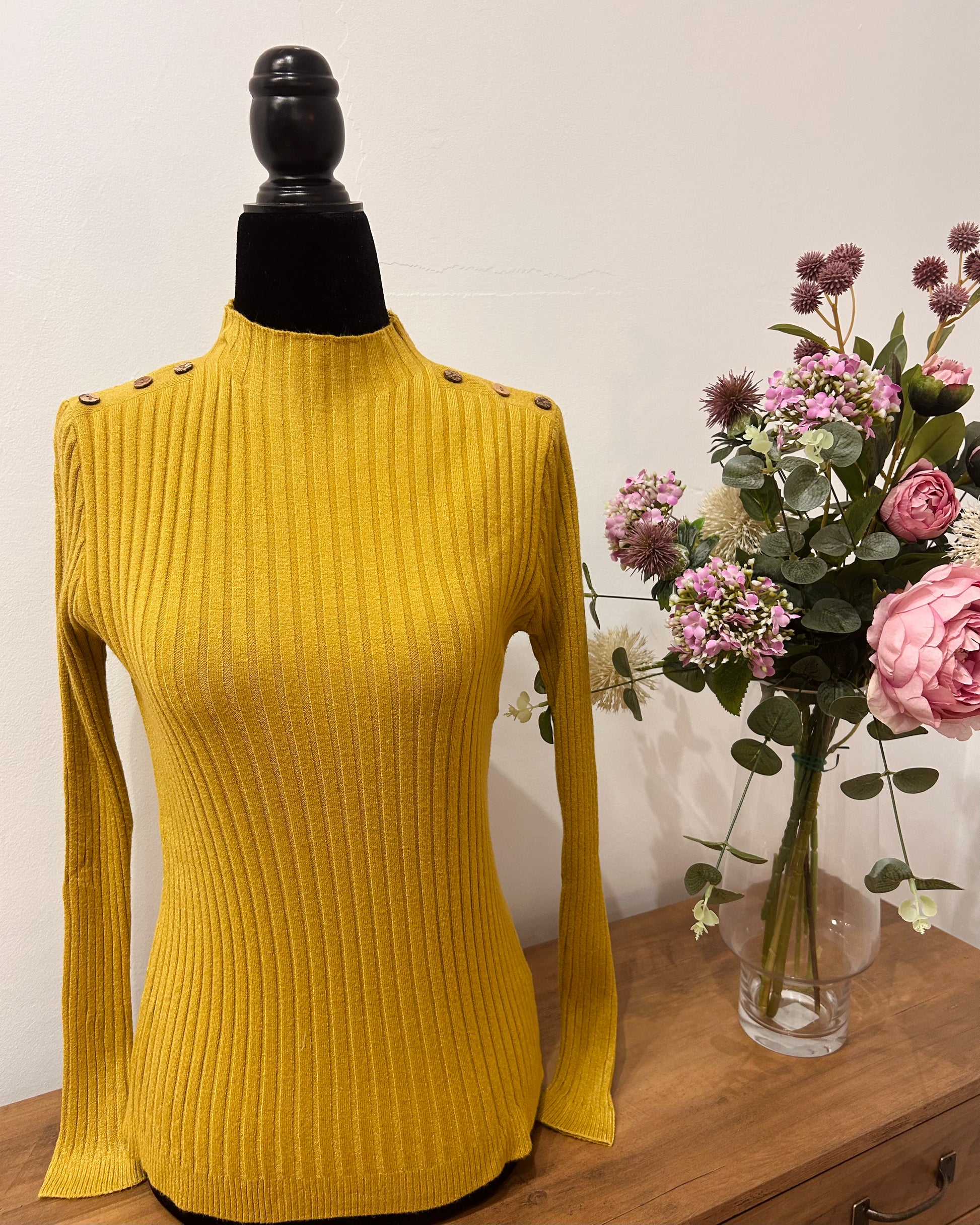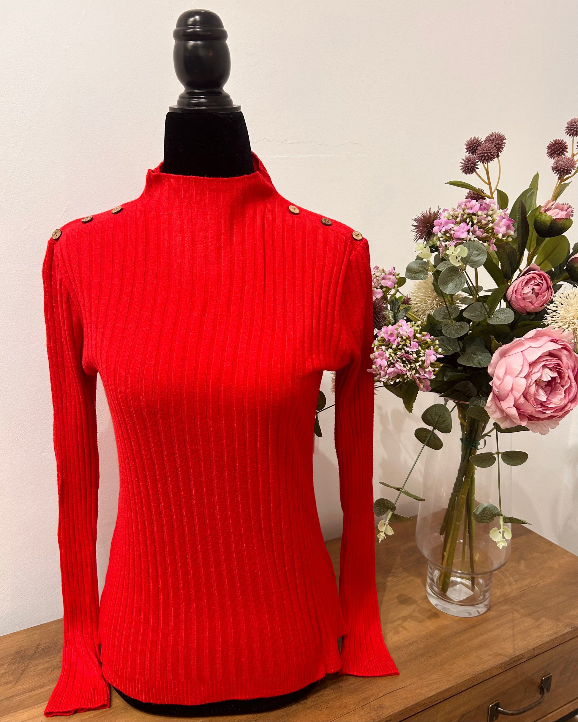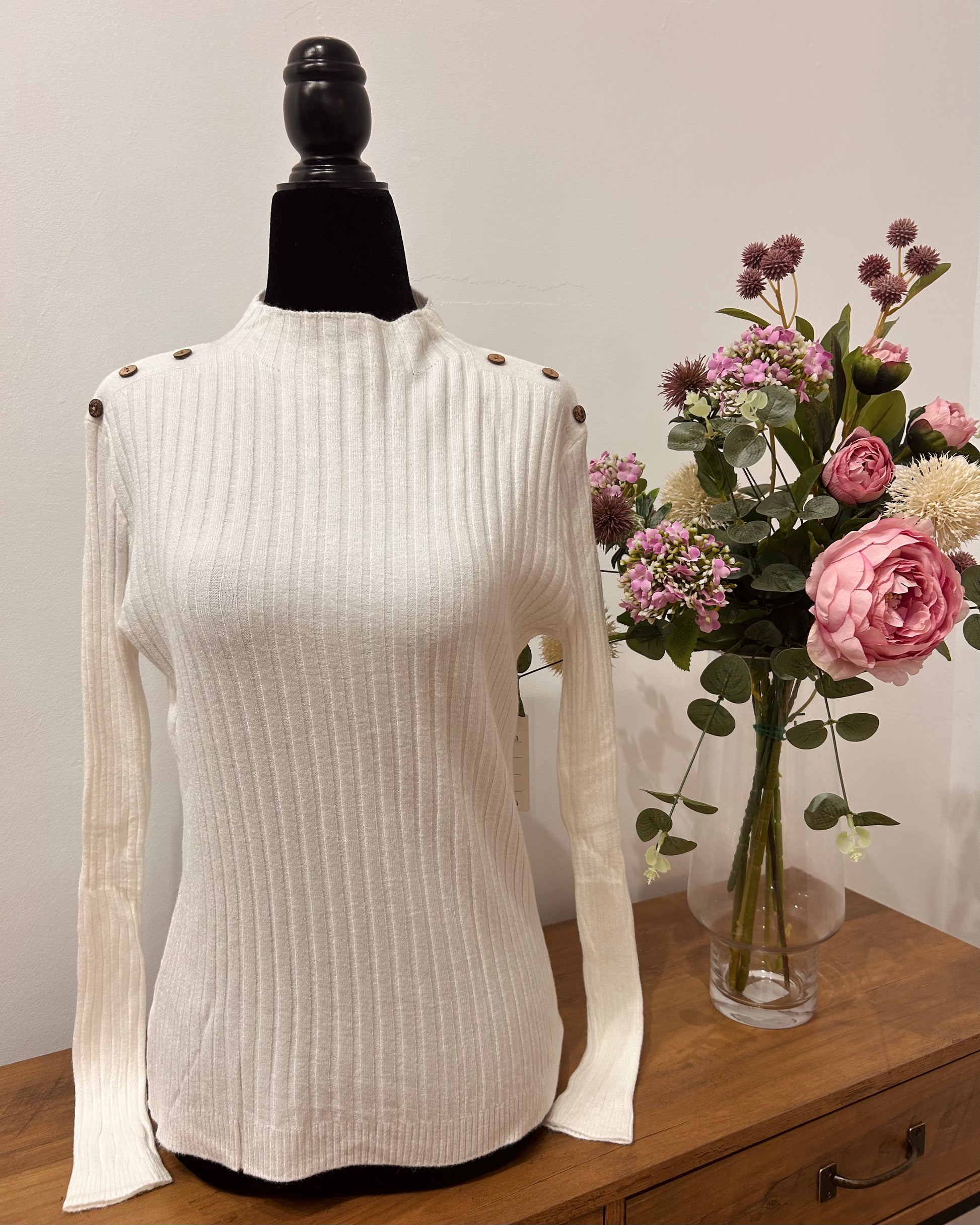 Jersey de punto con detalles de botones en los hombros.